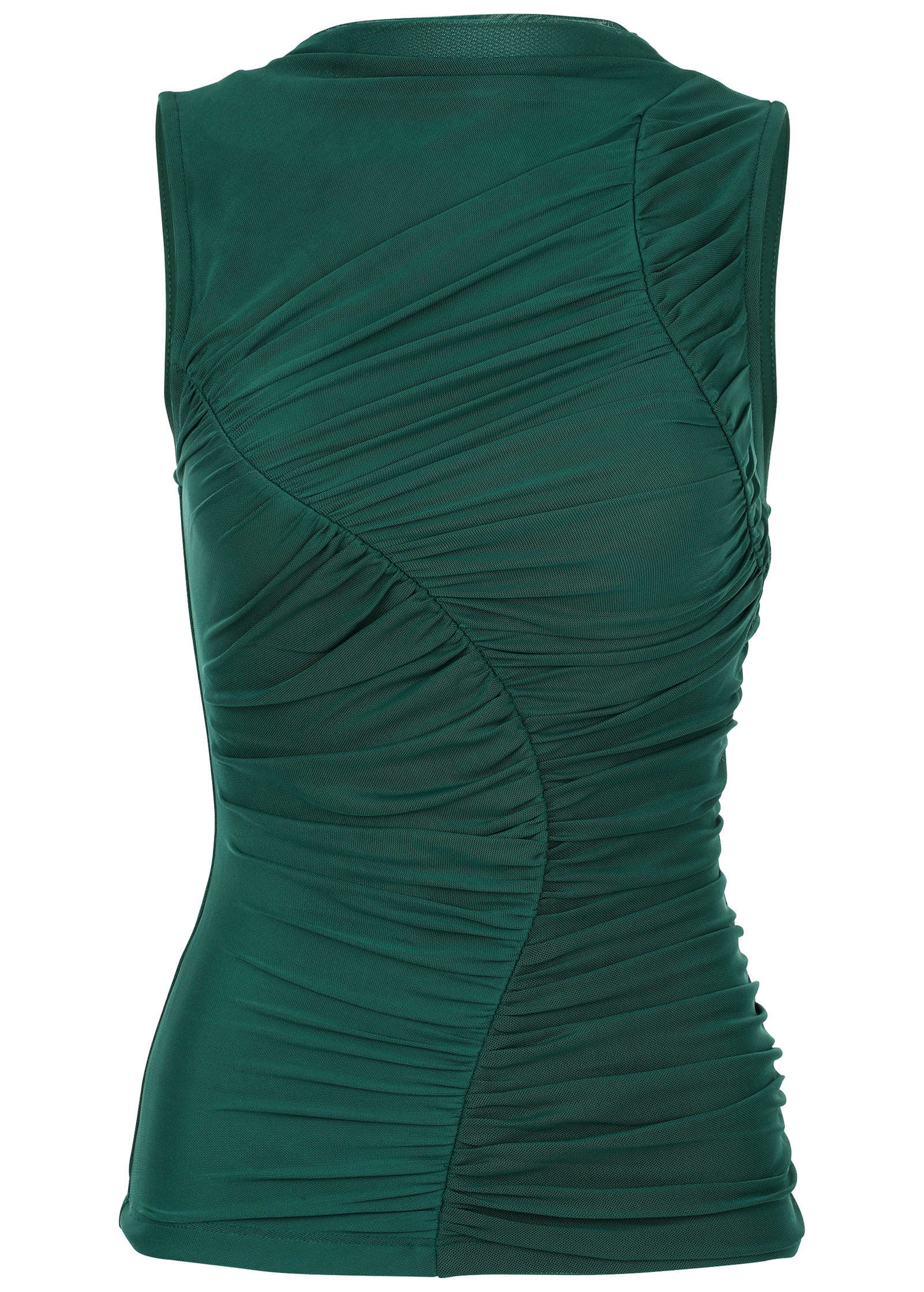 Sultry, sleek, and seriously chic—this ruched mesh top is your new go-to for nights out and beyond. Designed with a flattering mock neckline and figure-hugging ruching, it’s equal parts edgy and elegant. The stretchy mesh fabric ensures a flawless fit, whether you’re dressing it up with a blazer for work or pairing it with denim for date night.