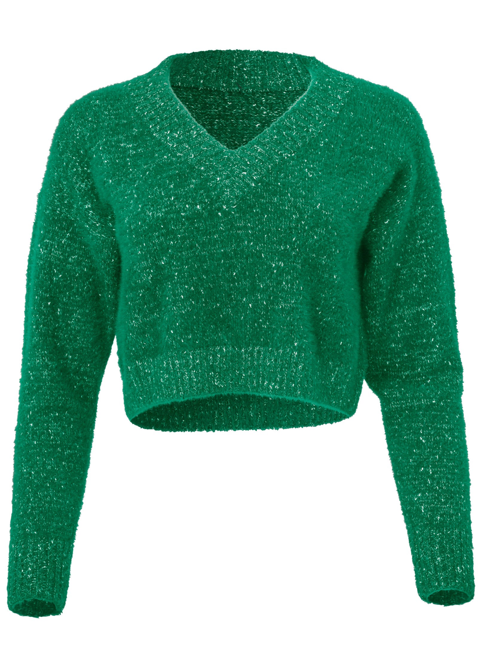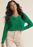 Embracing your soft side in cooler months is always encouraged. Pull on this ultra-plush sweater and you're instantly cozy. The classic V-neck style gets a modern twist with a cropped silhouette that's perfect for pairing with high-waist bottoms. * Sizes: XS (2), S (4-6), M (8-10), L (12-14), XL (16) * 18" approx. length; varies by size * Poly/acrylic/spandex. Imported