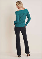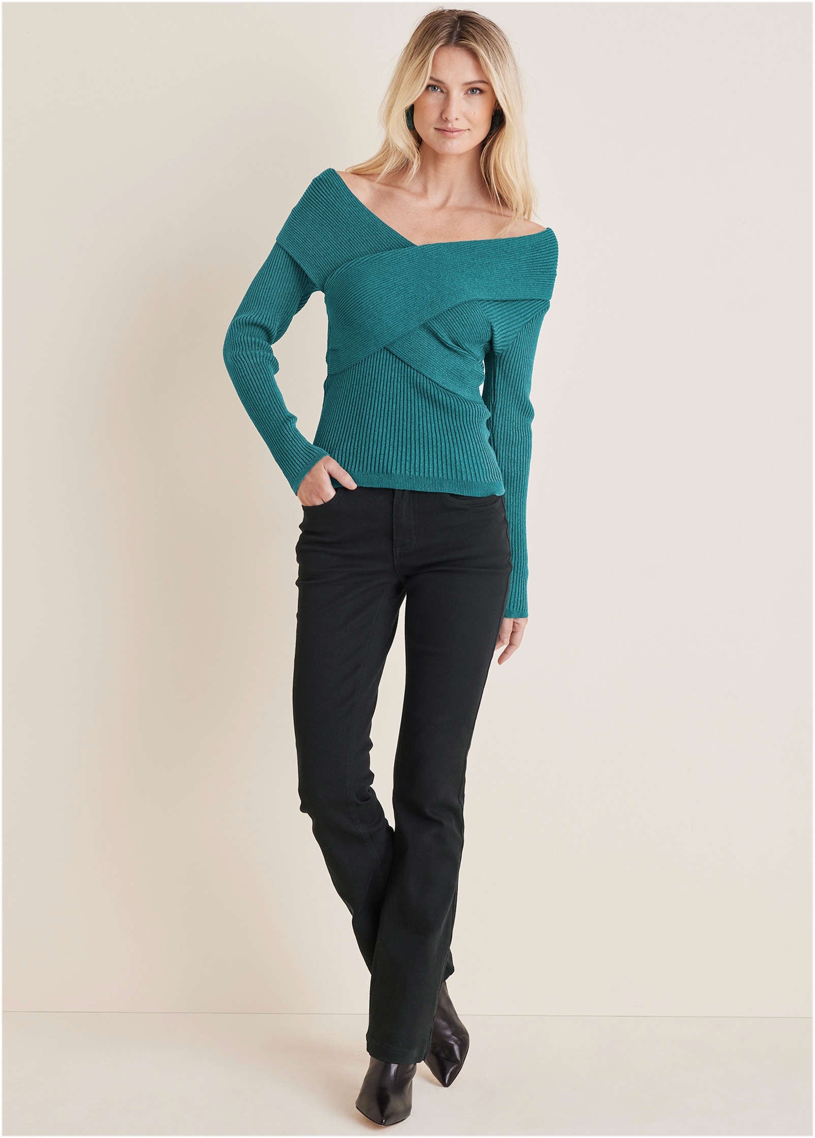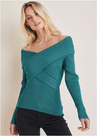 Looking for the perfect date night sweater? It's a wrap! This wrap-style pullover sweater engulfs your body like a comforting hug, highlighting every single curve. The slight V-neckline can be worn off the shoulder to show off your collarbone, while the cozy ribbed fabric keeps you warm while you heat up the room. * Sizes: XS (2), S (4-6), M (8-10), L (12-14), XL (16) * V-neckline * Long sleeves * Rayon/nylon. Imported