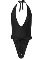 This one-piece brings sporty and sexy together in a retro-chic way, thanks to its high-leg silhouette, plunging neckline and open back. The drawstring at the waist is fully functional for all-day comfort.