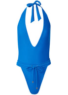This one-piece brings sporty and sexy together in a retro-chic way, thanks to its high-leg silhouette, plunging neckline and open back. The drawstring at the waist is fully functional for all-day comfort.