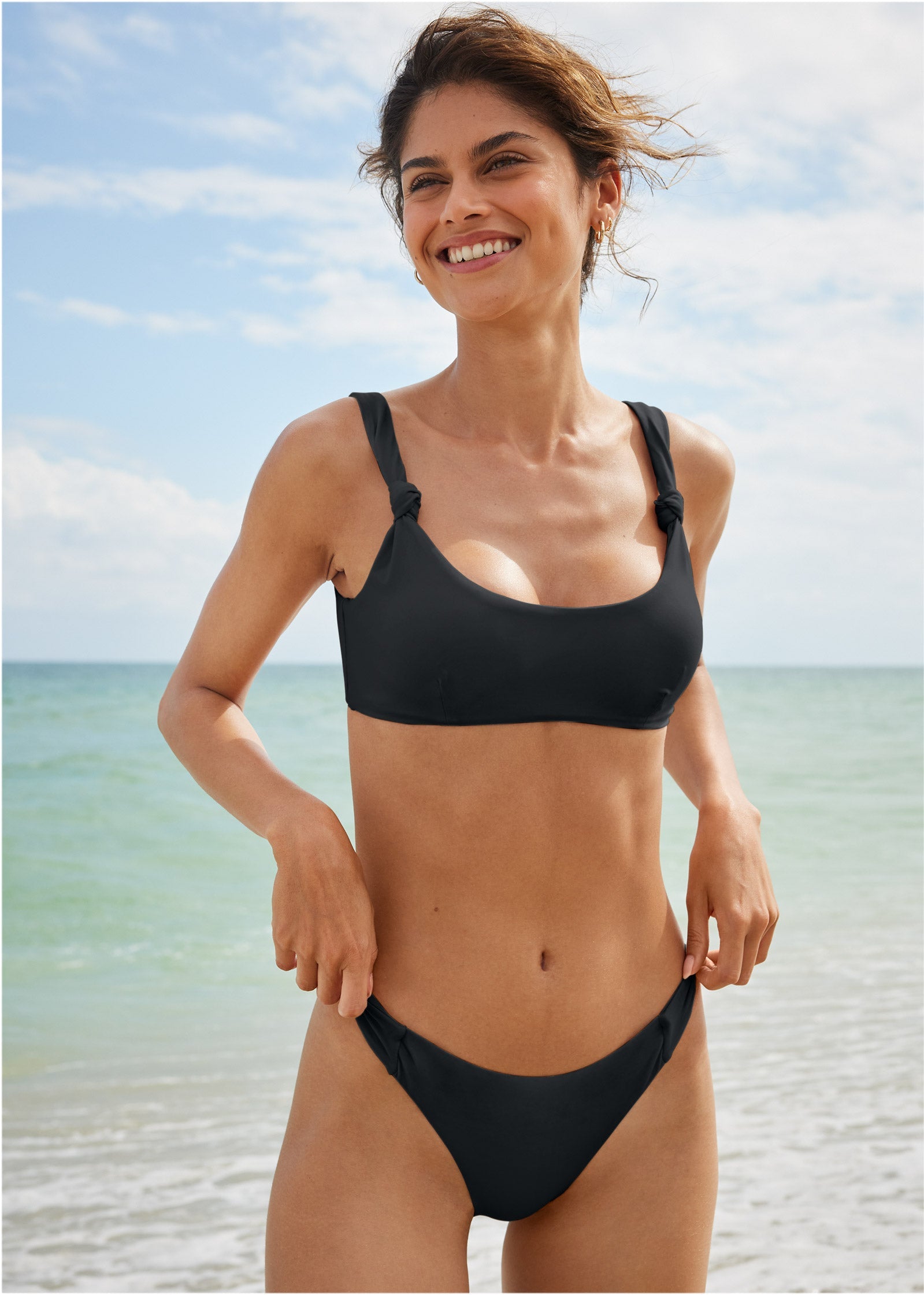 Timeless doesn't have to mean boring, and this bikini bottom is proof. Knot ties at each hip are a special detail that makes these classic bottoms feel unique. With a flattering scoop front and cheeky coverage in back, this low-rise style is ultra-chic.