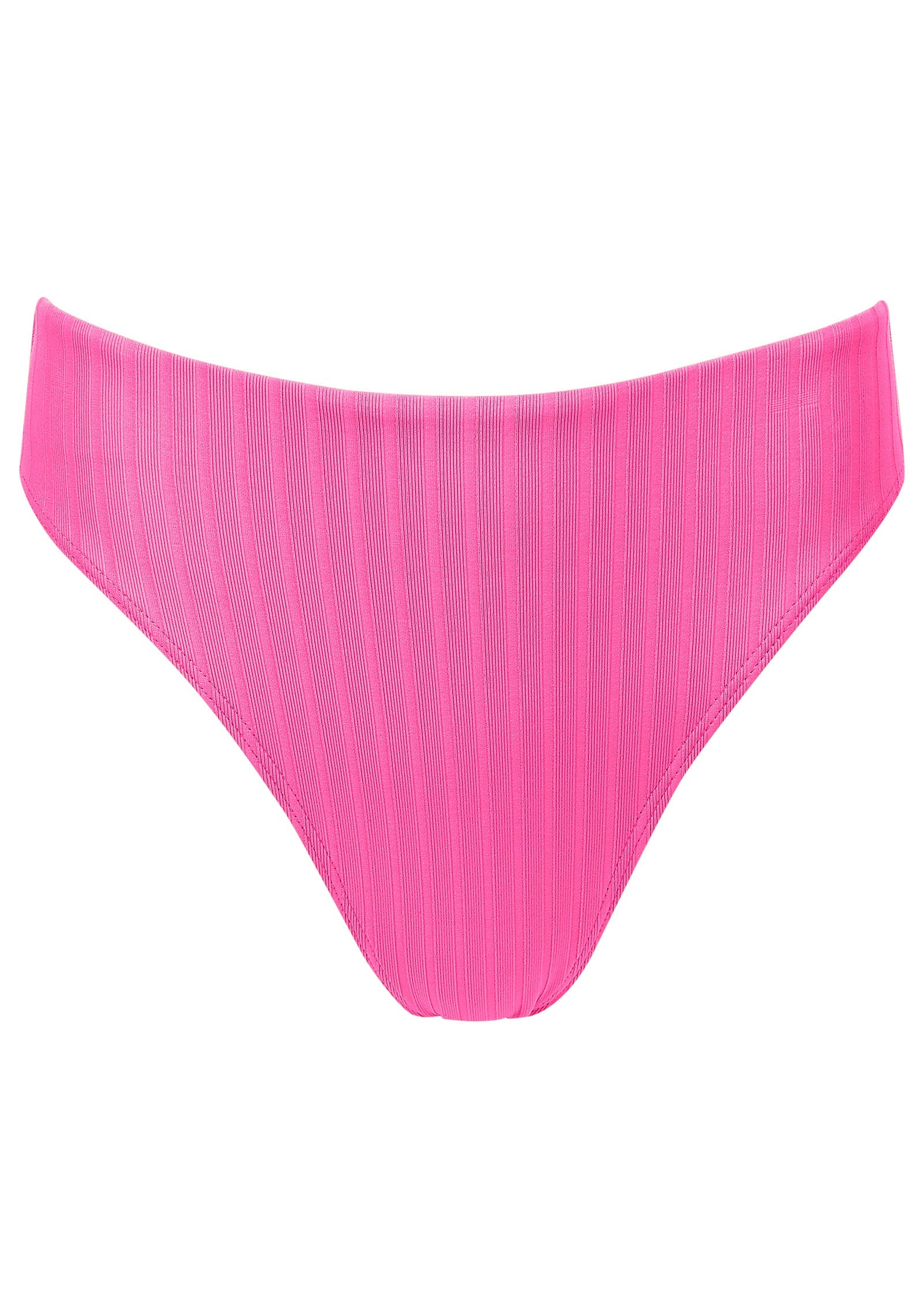 Our Bora Bora bikini bottom is a favorite with its flattering high rise and cheeky coverage that complements your curves. It's designed with a mid-leg cut, but you can pull it up on your hips for more of a high-leg look. Done in our SuperRib fabric, its textured yet smooth thanks to wide ribbing, and has athletic stretch to move with you whether you're sunning or splashing.