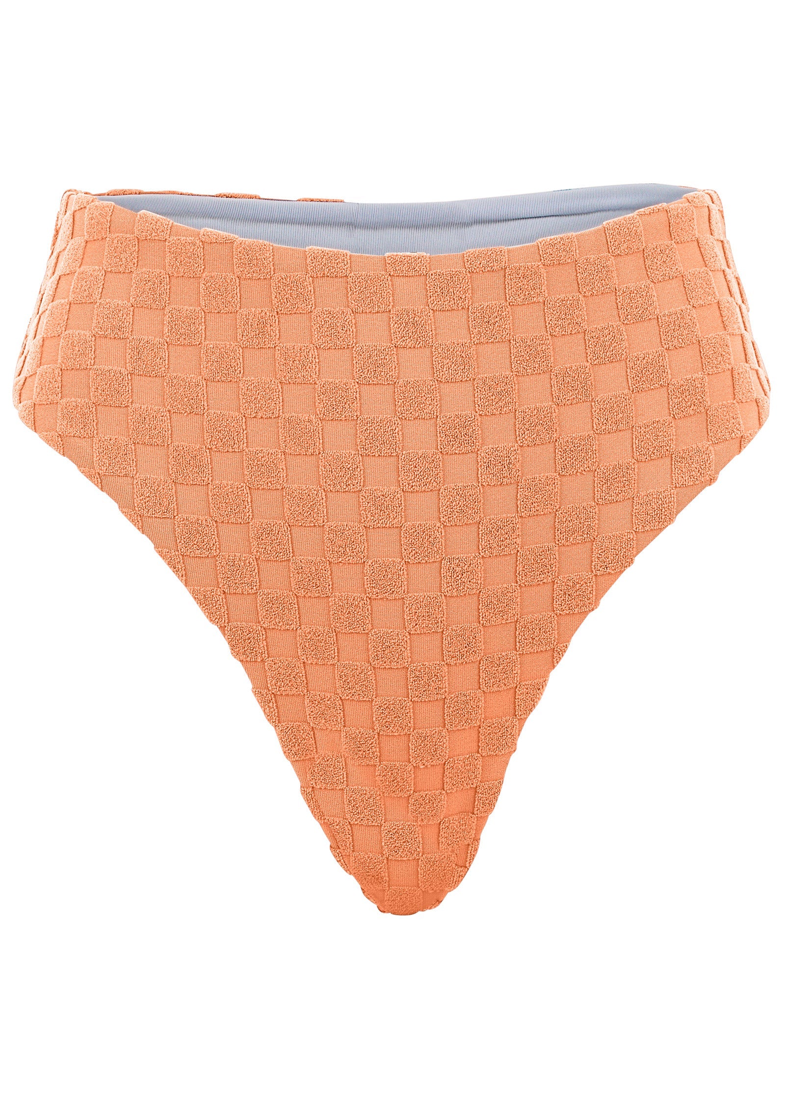 With a high rise and mid-leg cut, plus cheeky coverage in back, this bikini bottom is exactly what you'll want to wear for your next day in the sun. Made in our SoftCheck terry fabric, the plush checkered pattern feels just as good as it looks. * Sizes: XS (2), S (4-6), M (8-10), L (12-14), XL (16) * High rise * Cheeky coverage * SoftCheck (Poly/spandex. Import)