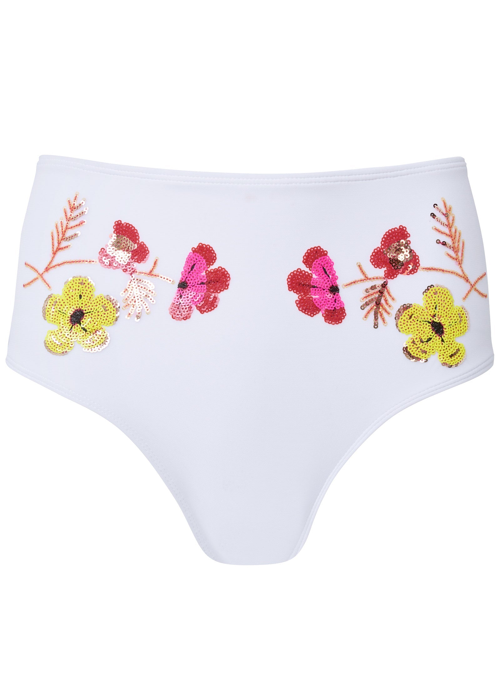 Sequins get a sweet new spin in this fun, flirty high-waisted swim bottom. Pair with the matching top or a bright solid piece for an extra bold look.