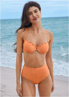 Our Tahiti Bikini Bottom will be your new go-to. Its high-rise hits right at your natural waist, flattering your figure and giving your beach-day confidence a boost. Midi coverage in back sits right between cheeky and moderate, accentuating your curves and balancing the high-waist cut. If you're looking for a perfect fit, figure flattery and comfort, you’ve found the one.