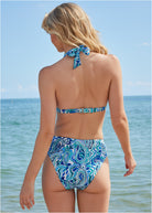 Our Tahiti Bikini Bottom will be your new go-to. Its high-rise hits right at your natural waist, flattering your figure and giving your beach-day confidence a boost. Midi coverage in back sits right between cheeky and moderate, accentuating your curves and balancing the high-waist cut. If you're looking for a perfect fit, figure flattery and comfort, you’ve found the one.