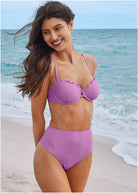 Our Tahiti Bikini Bottom will be your new go-to. Its high-rise hits right at your natural waist, flattering your figure and giving your beach-day confidence a boost. Midi coverage in back sits right between cheeky and moderate, accentuating your curves and balancing the high-waist cut. If you're looking for a perfect fit, figure flattery and comfort, you’ve found the one.
