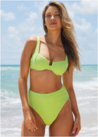 Take your next beach day to the highest level. These bikini bottoms are made to flatter with a high-rise cut that sits at your natural waist and moderate coverage suited for any beach day activity. Plisse fabric amps up the style factor even further, thanks to its subtle texture and lightweight feel.