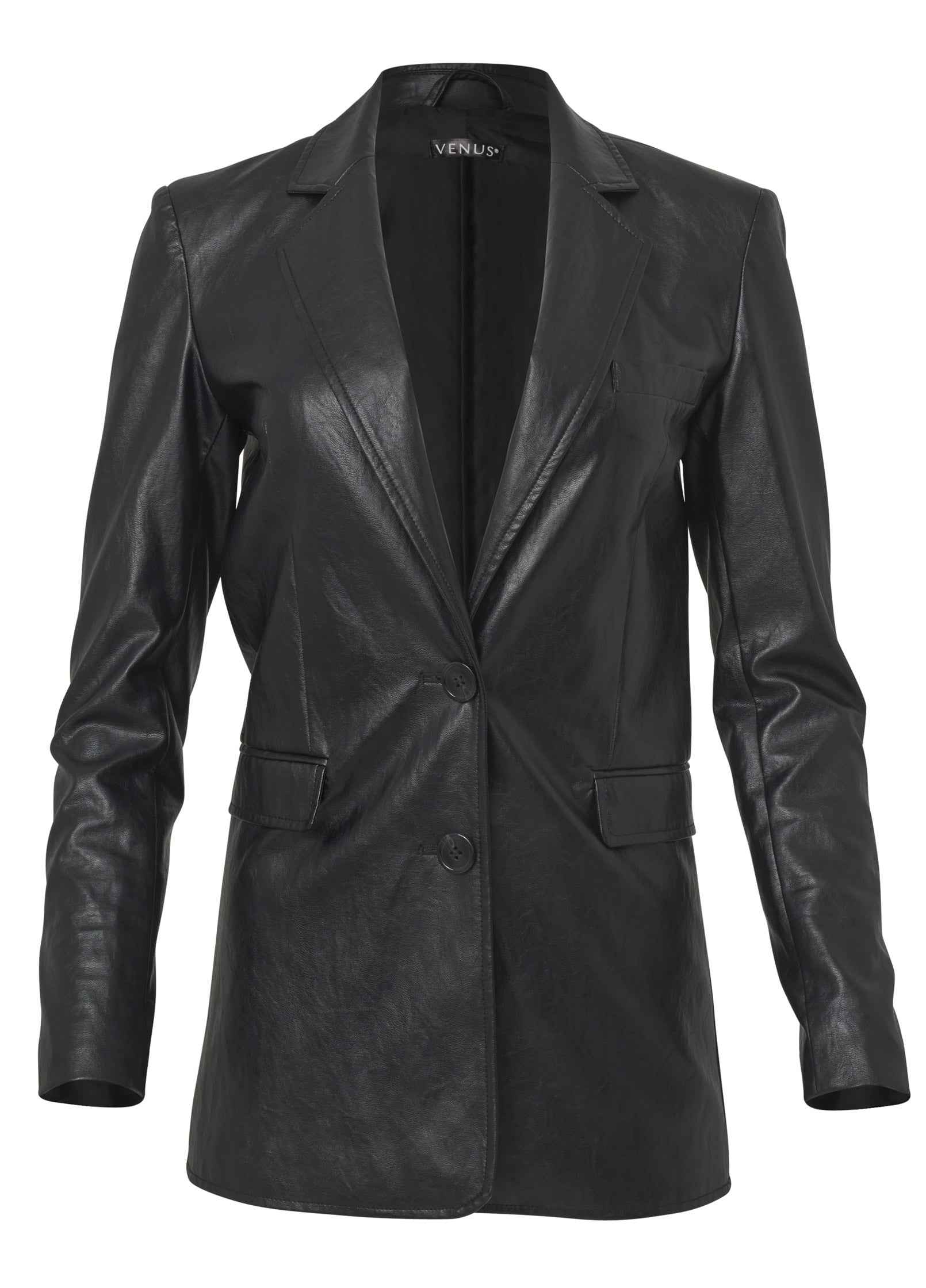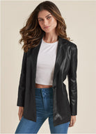 Faux-Leather Blazer - Jet Black