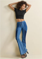 Color Block Flare Jeans - Denim Multi