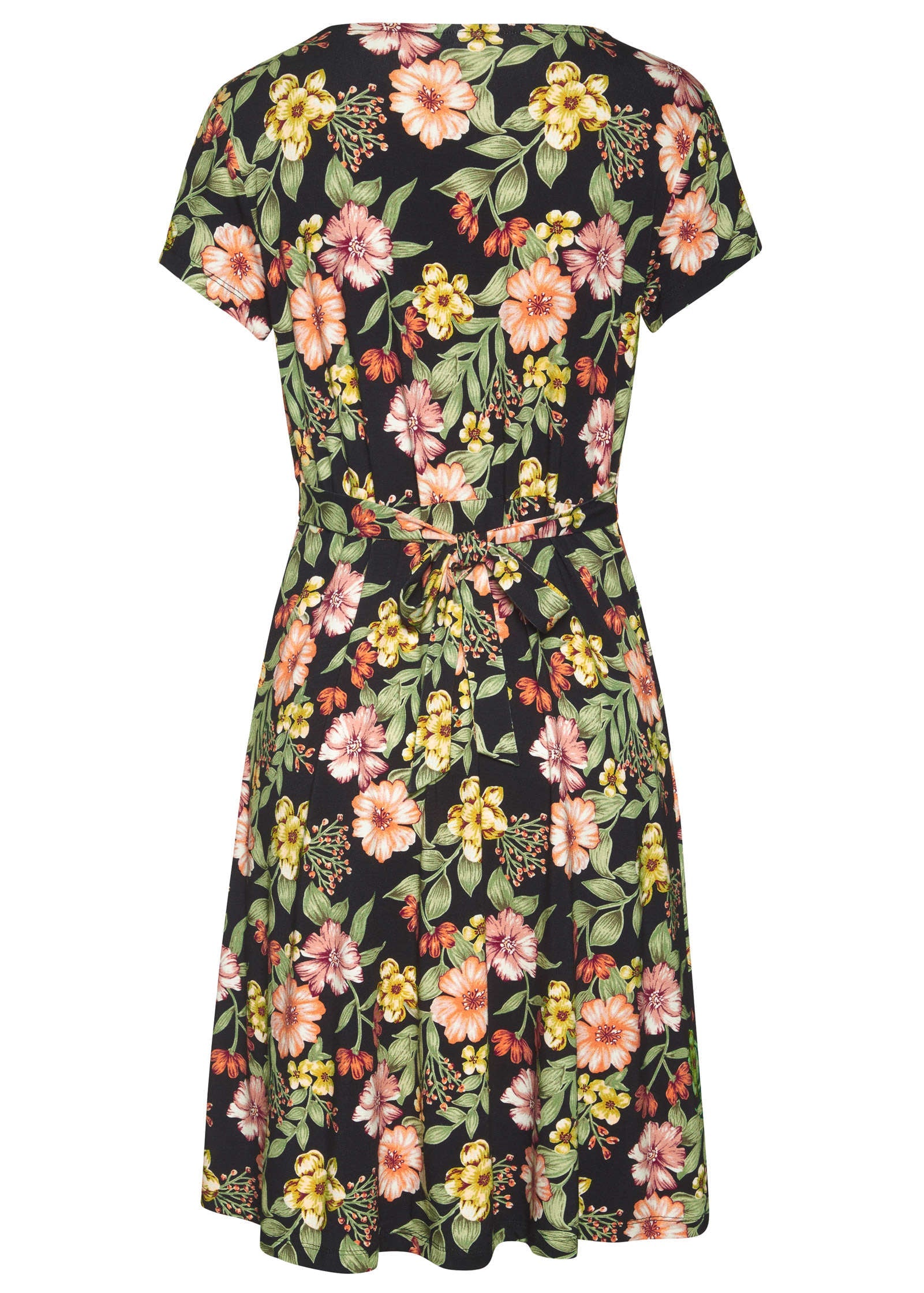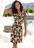Flirty, flattering, and effortlessly chic—this printed surplice dress is a must-have for any wardrobe. The V-neckline and fitted waist create a feminine silhouette, while the flowy skirt keeps it breezy and comfortable. Whether you're dressing it down with sneakers for a casual day out or pairing it with wedges for a date night, this versatile piece has you covered. * Sizes: XS (2), S (4-6), M (8-10), L (12-14), XL (16) * V-neckline: A timeless, flattering cut that elongates your neckline. * Short sleeves: Just the right amount of coverage for any season. * For printed items, print placement may vary. * By Lascana for VENUS * Viscose/elastane. Imported