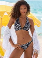 This bold floral-print bikini bottom gives an unexpected pop of glam with gold ring hardware at each hip. Pair it with the matching Triangle Halter Top or mix it with your favorite solid top.