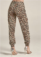 Faux Suede Leopard Print Cargo Pants - Brown Multi
