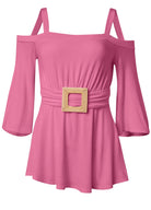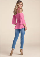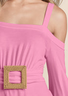 Raffia Belted Cold Shoulder Top - Pink