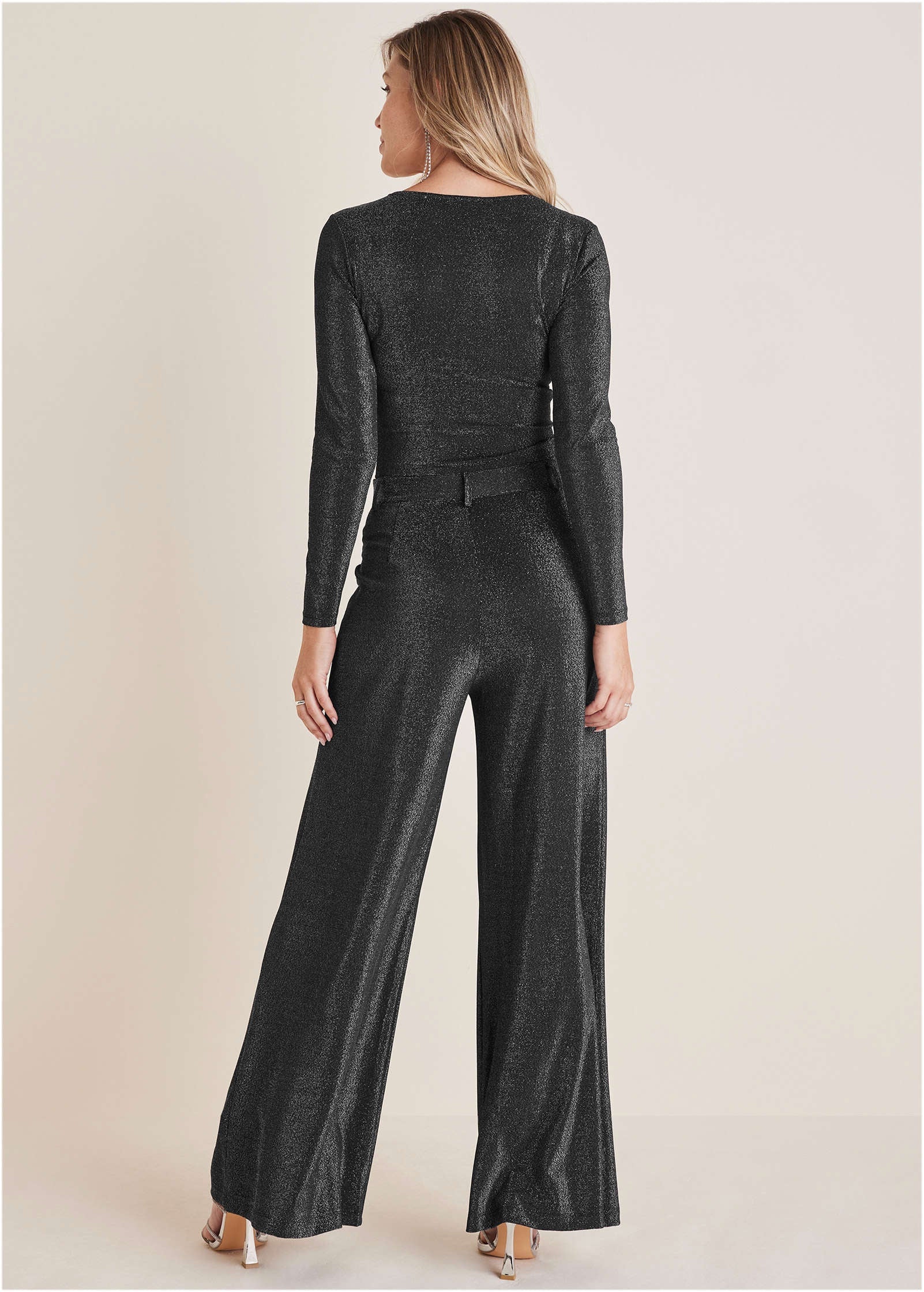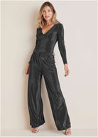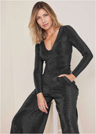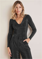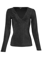 Glitter Knit V-Neck Top - Jet Black Glitter Knit