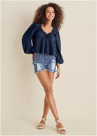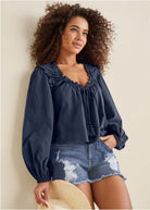 Tassel Long Sleeve Top - Navy