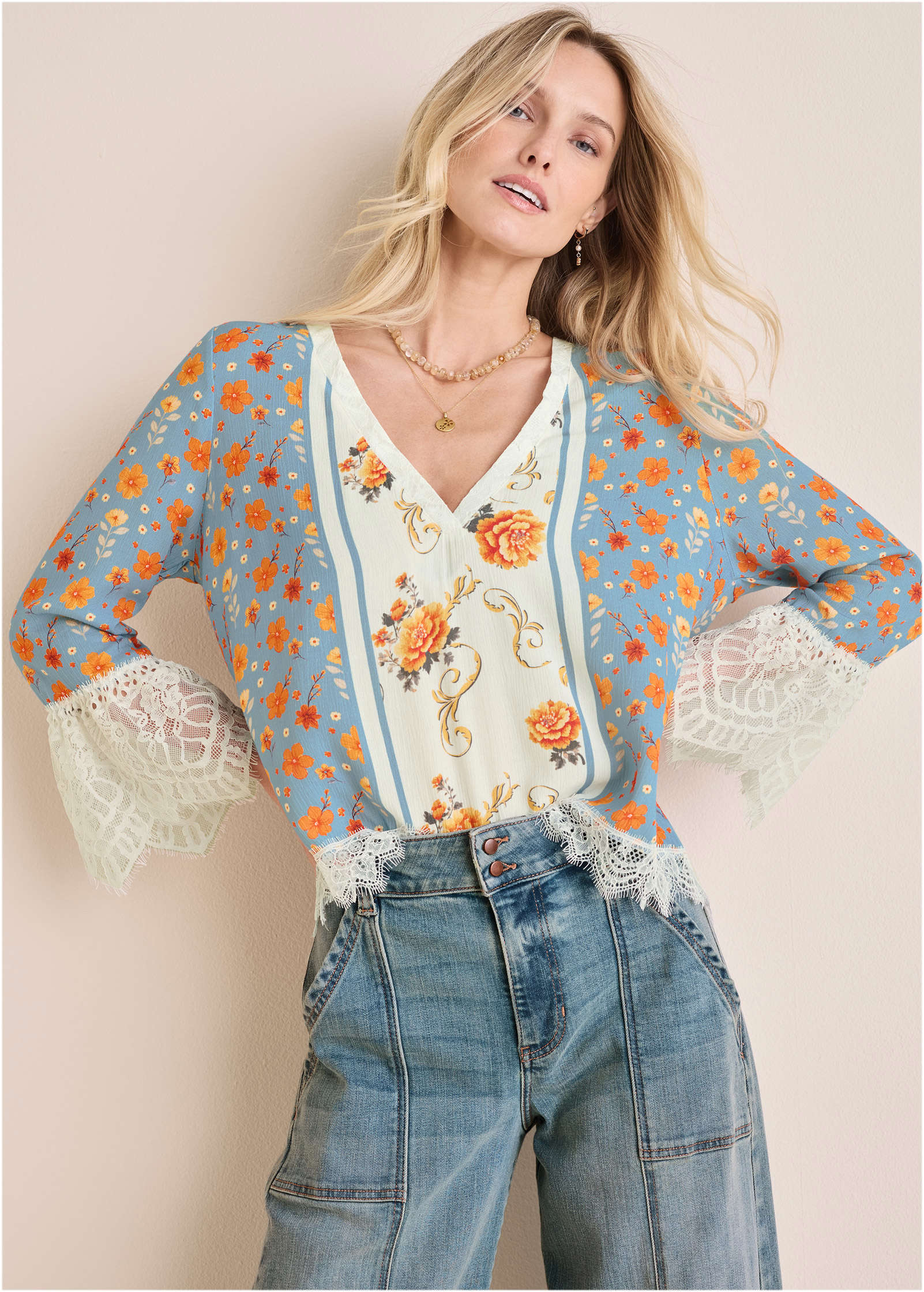 This breezy boho top is made to flirt! The flowy silhouette look effortless, while the lace trim gives a femme touch guaranteed to turn heads. Tuck it into your favorite pair of jeans or pair it with a twirly skirt for an easy-to-wear look.
