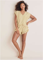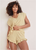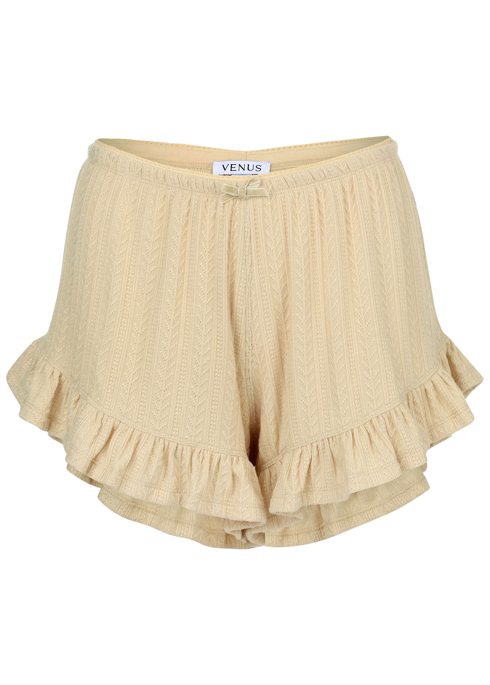 Flirty, cozy, and effortlessly luxe—these knit shorts are made for slow mornings and indulgent staycations. With a soft cable knit look, ruffle hem, and the sweetest little bow at the waist, they’re the definition of cute-meets-comfy.