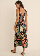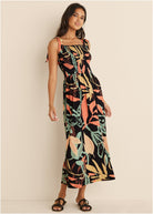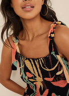 The is your LBD on vacation: still chic, but now with a tropical twist. Bold, abstract botanicals brighten up the black background while shoulder ties and a smocked bust give it a relaxed feel—the same one you get after hours spent in the sun. Clothes, they're just like us. * Sizes: XS (2), S (4-6), M (8-10), L (12-14), XL (16) * No closure * Sleeveless with tie shoulder straps * Smocked bodice * Unlined * By Lascana for VENUS * Fabric has stretch * Viscose. Imported