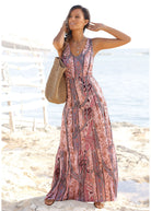 Tiered Maxi Dress - Pink & Red