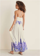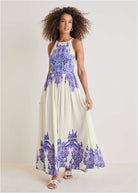 Printed Linen Maxi Dress - Purple Paisley Border