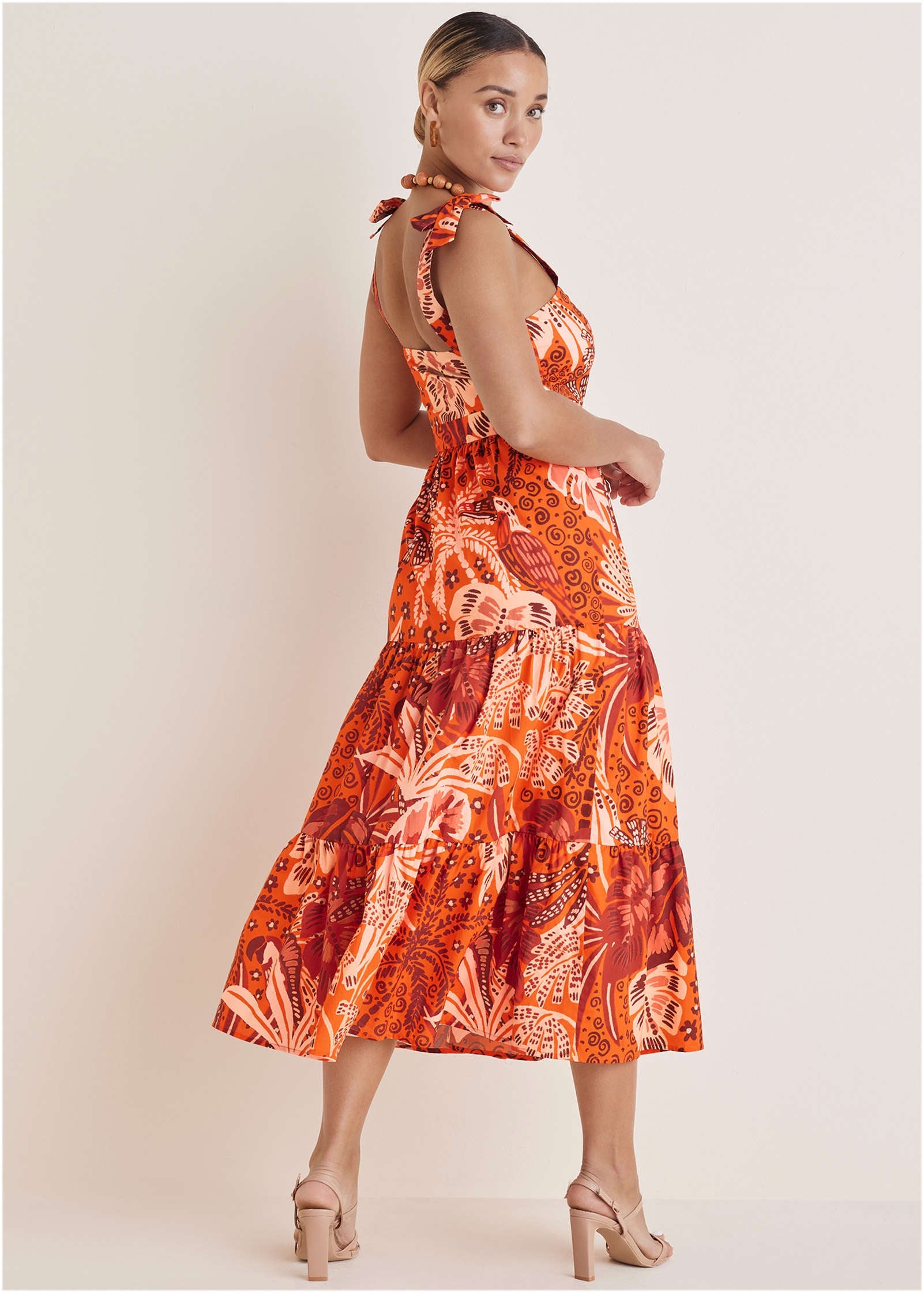Breezy, twirl-worthy, and ready for every summer plan, this cotton poplin tiered maxi brings the drama in the best way. With tie straps, a flattering square neckline, and a floaty tiered skirt, it’s the dress you’ll pack first (and wear on repeat). Style it with sandals for day or dress it up with wedges and statement earrings.
