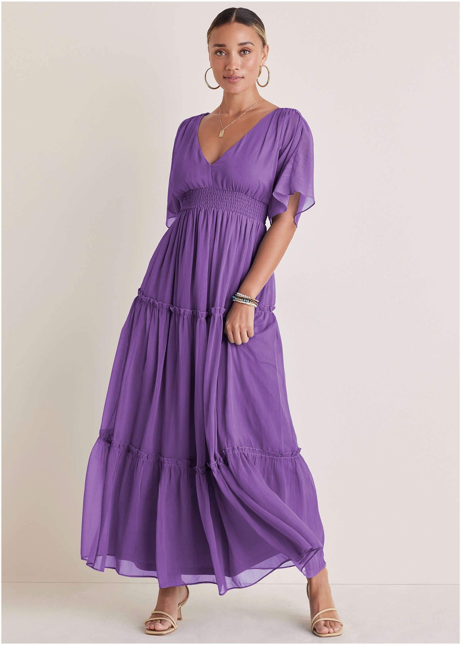 Flutter Sleeve Maxi Dress - Cattleya Orchid