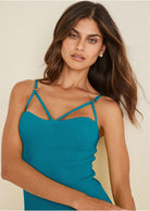 Get ready to flex your curves in this head-turning bodycon dress. Ribbed knit fabric comfortably hugs your shape for a figure-highlighting look that low-key feels like you're wearing loungewear. Then there's the strappy neckline that's so bold, we had to make this dress a midi to balance the upward eye-drawing effect. * Sizes: XS (2), S (4-6), M (8-10), L (12-14), XL (16) * Adjustable straps * Sweetheart neckline * Midi length approx. 45.5" * Rayon/nylon. Imported