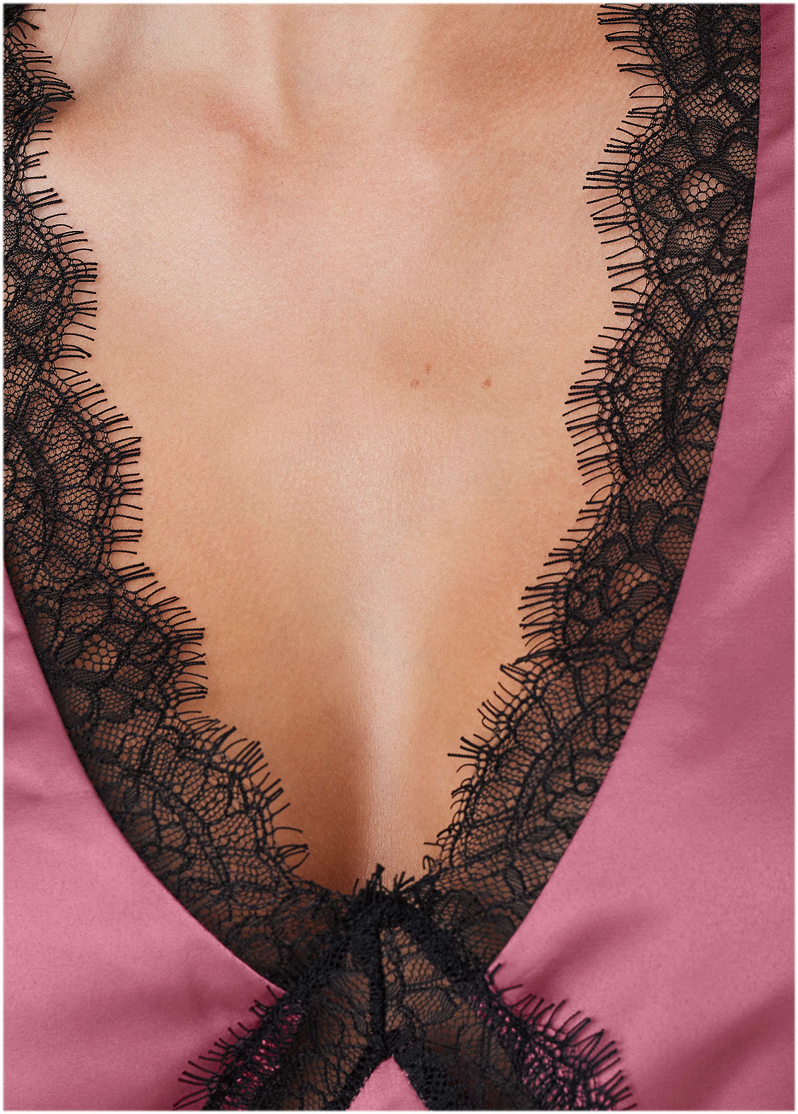 You need this dress in your lineup! Complete with lace trim, this style ensures you'll turn heads in every room. Whether you're wearing it with sneakers or dressing it up for a special occasion, the silky fabric drapes beautifully, flattering every curve for a comfortable and confident fit. * Sizes: XS (2), S (4-6), M (8-10), L (12-14), XL (16) * Plus sizes: 1X (18-20), 2X (22-24), 3X (26-28) * Midi length; from shoulder: 48" missy, 49" plus * V-neckline * Lace detail * Sleeveless * Side slit * Polyester/spandex. Imported