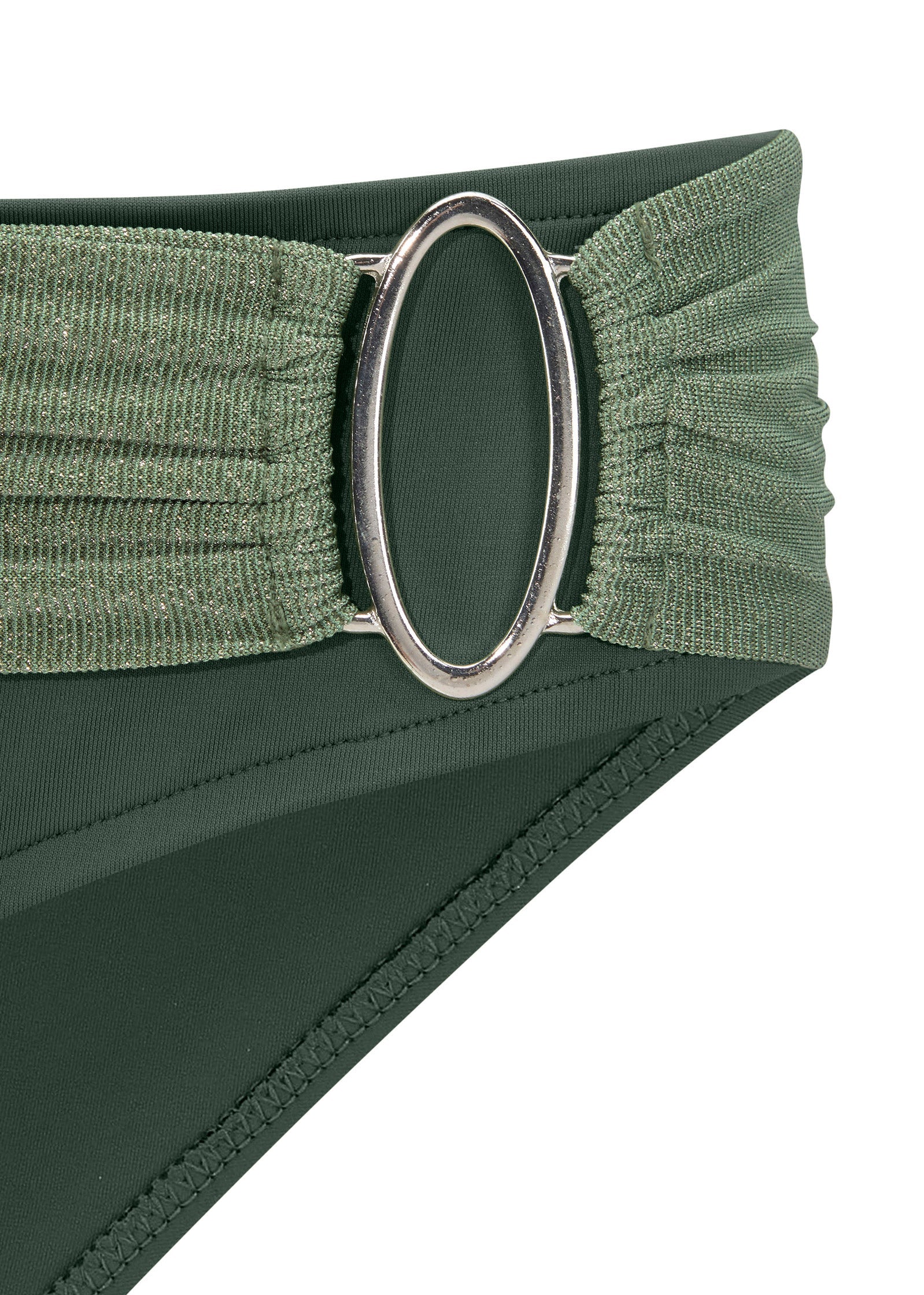 Bring a little luxe to your day in the sun when you pull on these low-rise bikini bottoms. The contrasting overlay that sits across the hips shimmers, finishing with an equally-as-luxe metallic ring detail that's placed off-center at one hip.