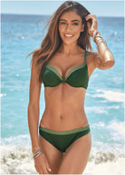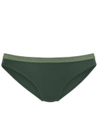 Time to take a dip and these scoop-front bottoms make sure you're ready for it! Dipping slightly at the center waist, this classic pair gets a chic upgrade with a shimmery band around the hips. Get the look of added curves and longer legs with this always-stylish bottom!