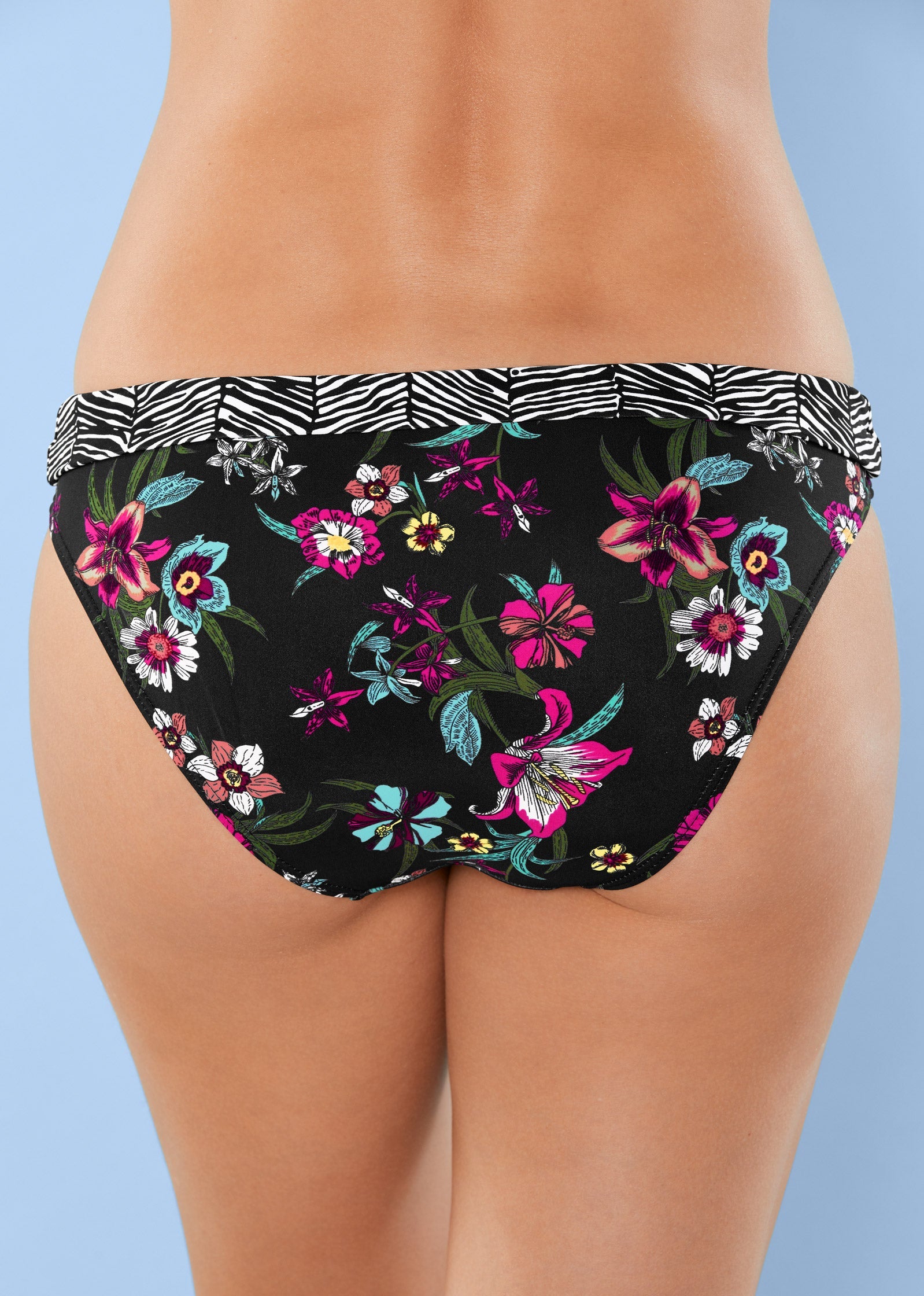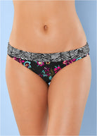 These classic bottoms feature an eye catching tribal printed band that folds over onto itself around the waist. Tribal band stays folded even when you're moving and shaking.