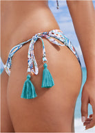 Get into the tropical swing with these skin-bearing, low-rise bikini bottoms! Tassel ties adjust at the sides, assuring a perfect fit and adding a playful edge to this versatile, pool-ready pair. Add a coordinating top and you're ready to take on sunny days in style! * Adjustable tassel ties at sides * Moderate rear coverage * Print placement may vary * CBK: Domestic or import of nylon/Lycra tricot * All other colors: Domestic or import of nylon/spandex tricot