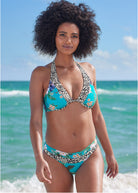The popular low rise styling of this cheeky bikini bottom sits low across the hips, taking a no-frills approach to beach day with its contrasting banded trim. The sleek shape flatters your figure and creates the look of longer, leaner legs while accentuating your waistline.