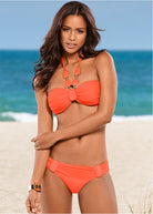 Large enameled pieces decorate the hips and slide along fabric to change the look.