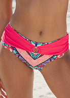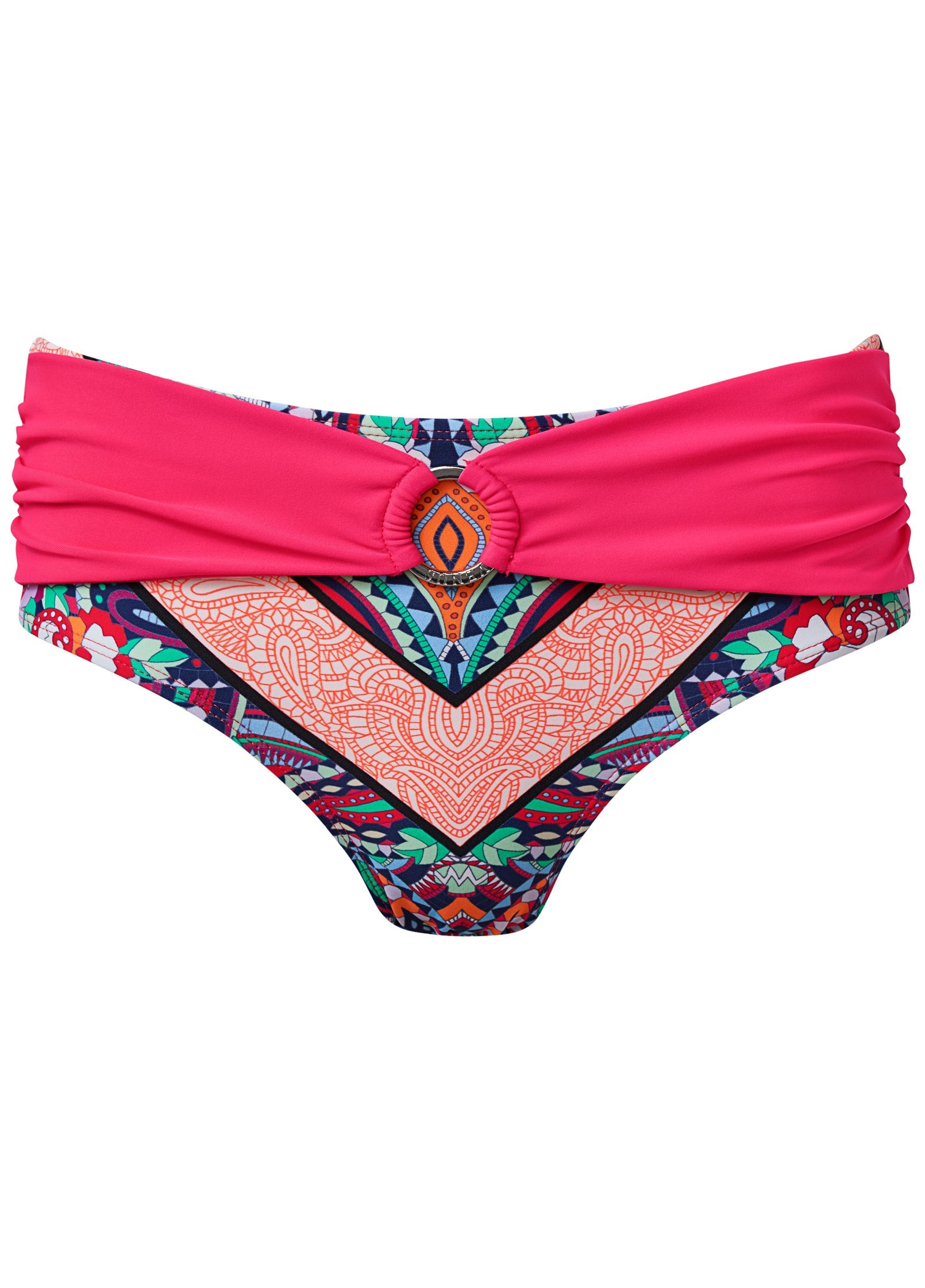 Classy coverage and a touch of sophistication is exactly what these chic mid-rise bottoms deliver. A sleek ring detail accents elegantly gathered fabric at the center front as it draws attention to the hips for added flair and a touch of glam. * Mid-rise * Moderate rear coverage * Ring detail at front * For printed items, print placement may vary * Some colors of this style are made of recycled fabric. For more information, see MORE DETAILS * AQR, BKK, COB, CWB, MOH, MWS, RDD: Domestic or import of quality recycled nylon/spandex tricot * All Other Colors: Domestic or import of quality nylon/spandex tricot