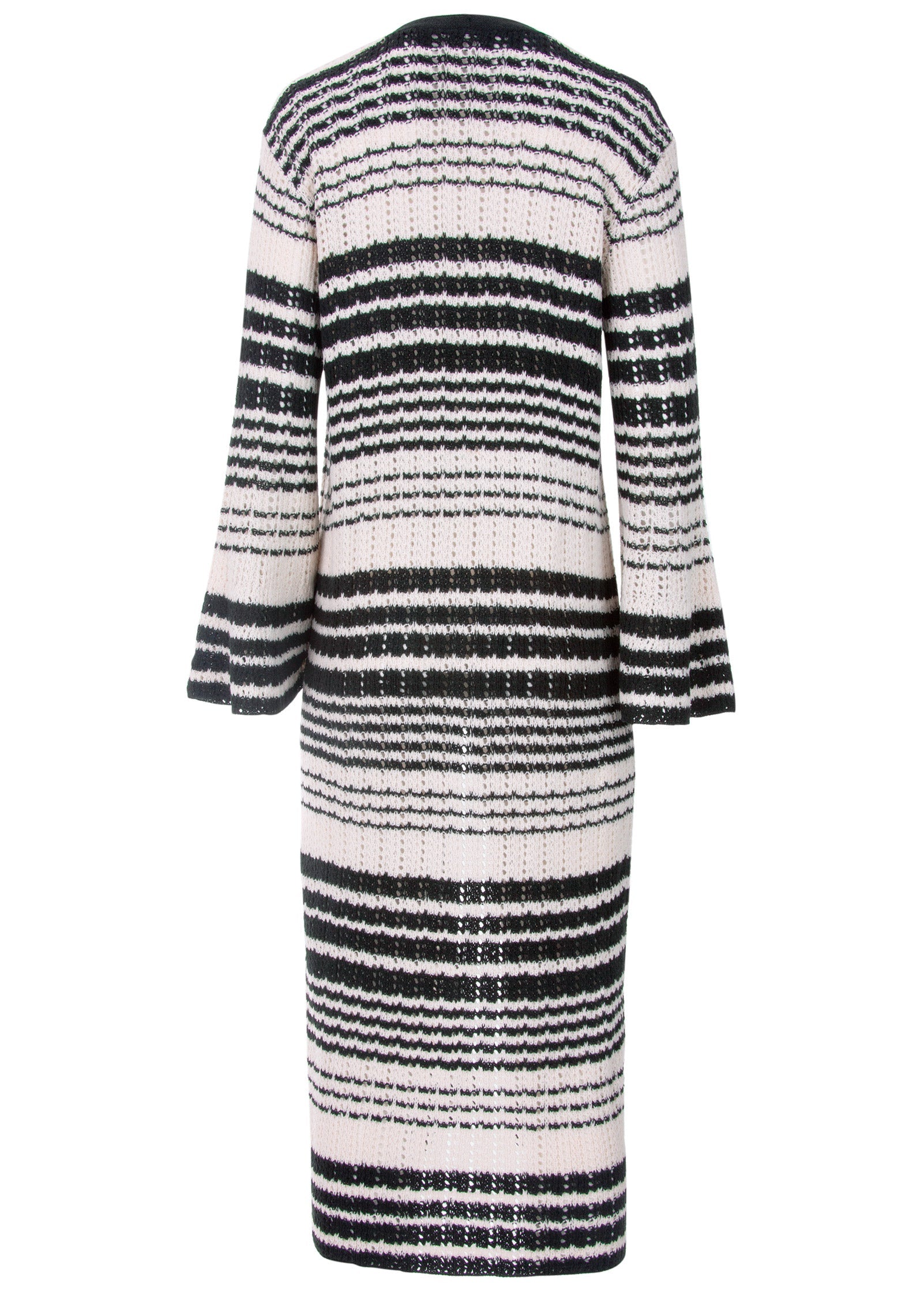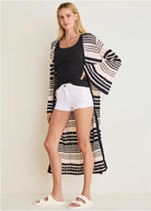 It's never not sweater weather as far as this lightweight knit duster is concerned. Varying stripes and exaggerated bell sleeves are an eye-catching duo, one that earns this piece statement-maker status. Toss this easy layer over a tank and shorts or a sun-ready mini dress on a breezy day. * Sizes: XS (2), S (4-6), M (8-10), L (12-14), XL (16) * 48" approx. length; varies by size * Fabric has stretch * No closure * Bell sleeves * Relaxed fit * Acrylic. Imported