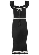 Ruffle Contrast Midi Dress - Jet Black