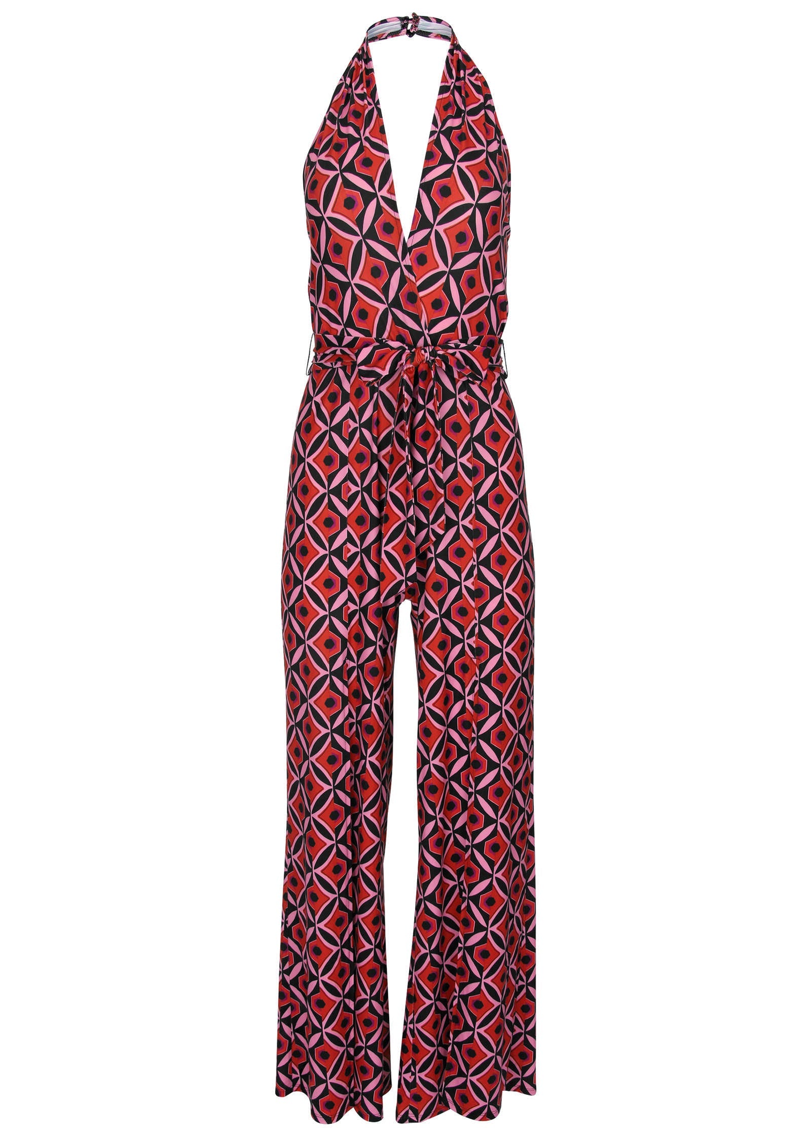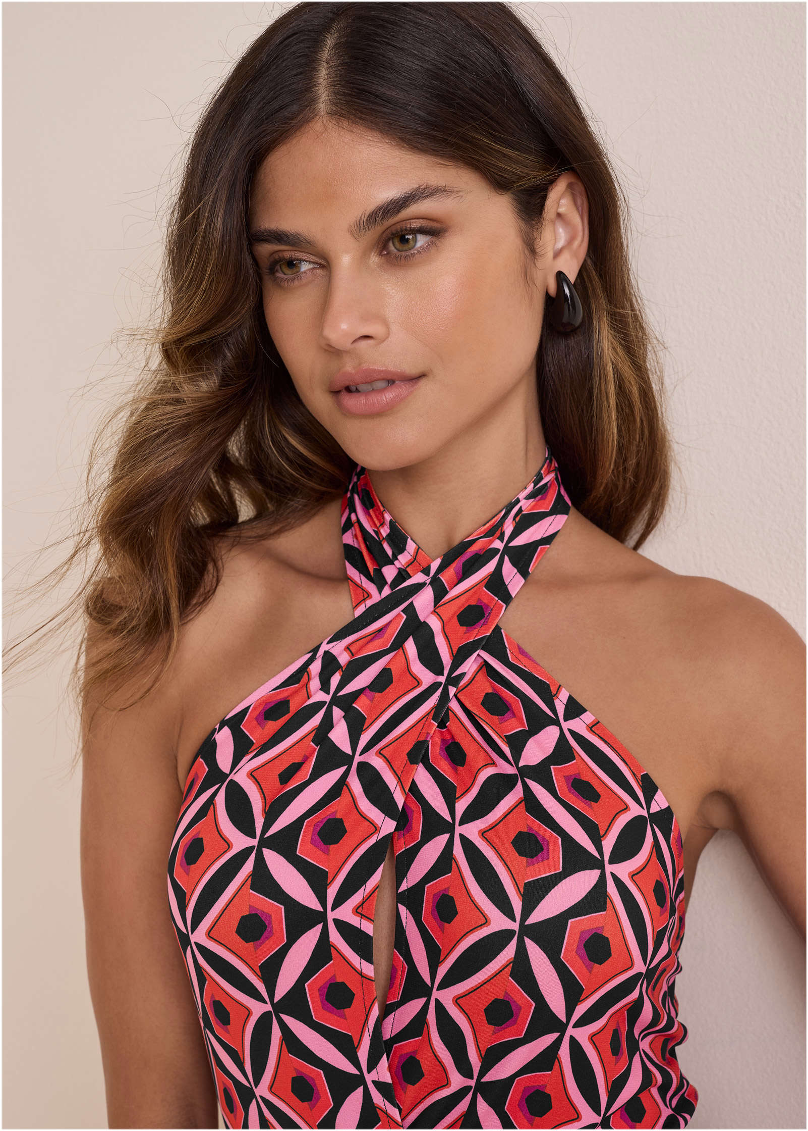 Cross Halter Jumpsuit - Red Lagoon Geo