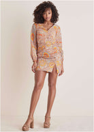 Balloon Sleeve Mini Dress - Medallion Golden Patchwork