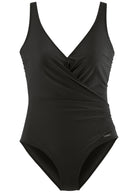 In this sleek one-piece, you'll be ready to soak up every single ray of sun. The extra-flattering V-neckline highlights your top, while the bottoms provide moderate coverage. Sturdy, adjustable straps give you plenty of support, whether you're sipping a drink or taking a dip. Just add your favorite denim shorts or a breezy skirt for a cover-up, and you'll be able to go from beach to bar without missing a beat.