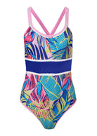 Take a dip in this chic one-piece with ample sun coverage! Sheer diamond stitch trim reveals a peek underneath, while the scoop neck and low scooping back add a flirty element to the sporty silhouette. Adjustable straps crisscross in the back for custom support. * Available in plus sizes * Print placement may vary * Adjustable shoulder straps crisscross at low open back * Removable padding * Sheer diamond stitch trim * Moderate coverage * Domestic or import of poly/spandex tricot