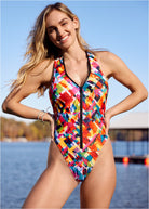 The legs-for-days look is yours in an instant when you slip into this one-piece with an ultra high-cut leg line! Subtle hints of sporty style shine through with the wide shoulder straps, racerback and zipper front while the curvy silhouette adds just the right balance of sexy.