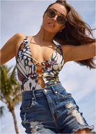 Beaded Plunging Swimsuit - Butterfly Cheetah