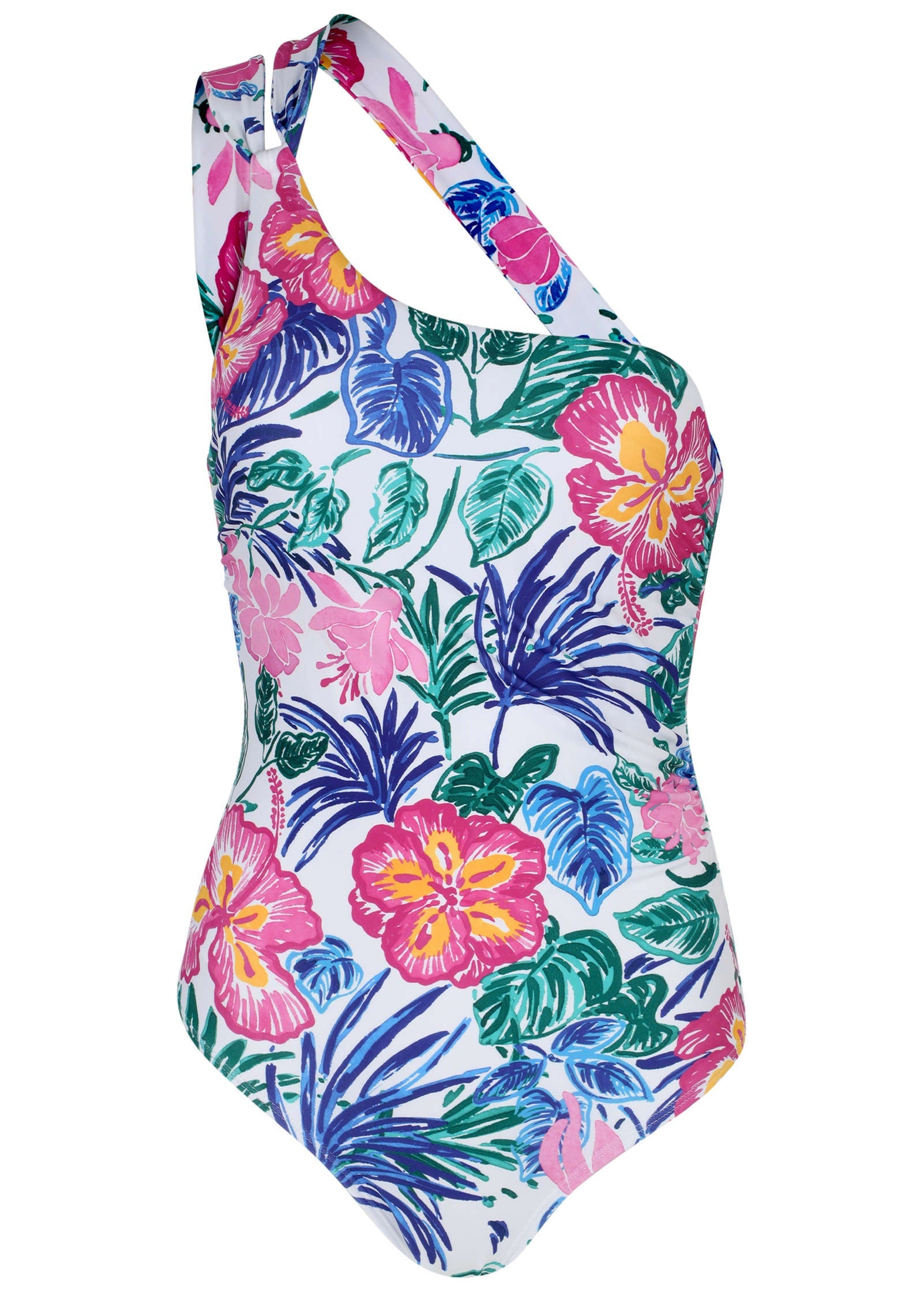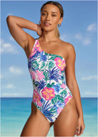 Elevate your swimwear game with the One-shoulder One-piece, featuring a bold one-shoulder design and an open scoop back for a chic, modern look. The tie closure adds a customizable fit, ensuring you feel confident and secure whether you're soaking up the sun or taking a dip. Just add a breezy cover-up or a throw on shorts for a bold beach-to-bar look.