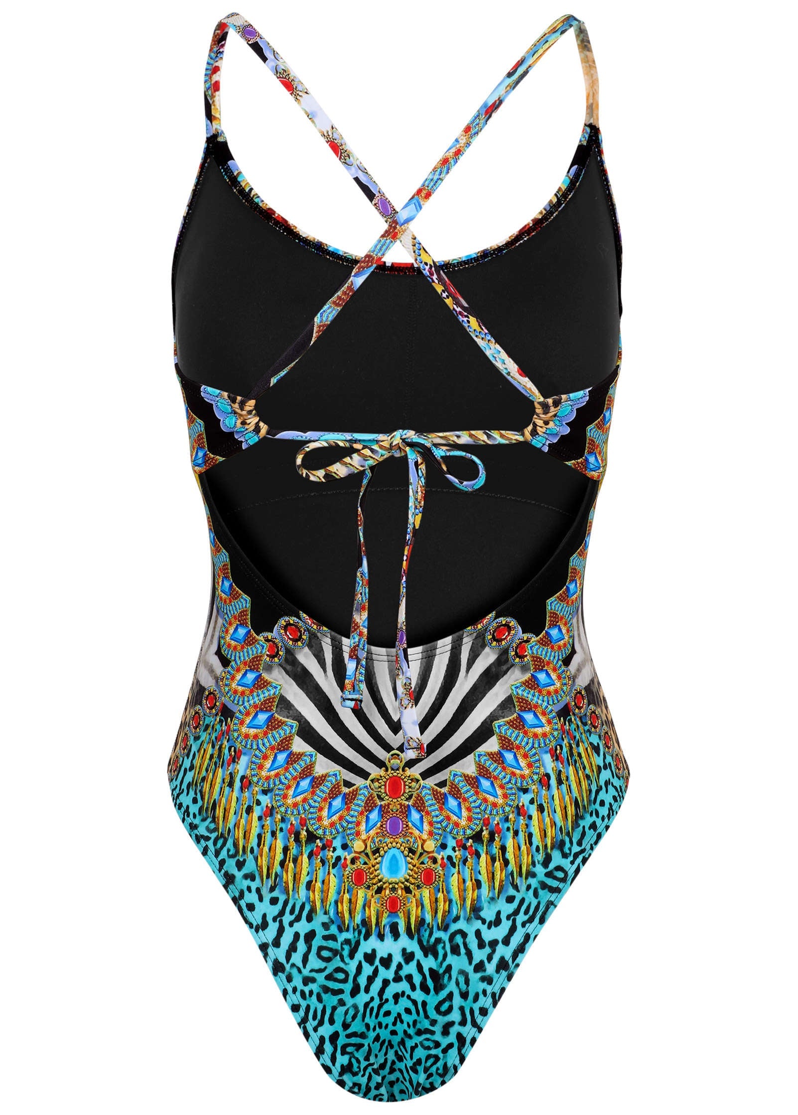 Paradise is just a swimsuit away and this one-piece is your one-way ticket. In the front it's super sleek with a scoop neckline and mid-leg cut. The back, on the other hand, is a total party with crisscross straps, a playful cutout and midi coverage. Whether you take a dip or not, this suit makes a splash.