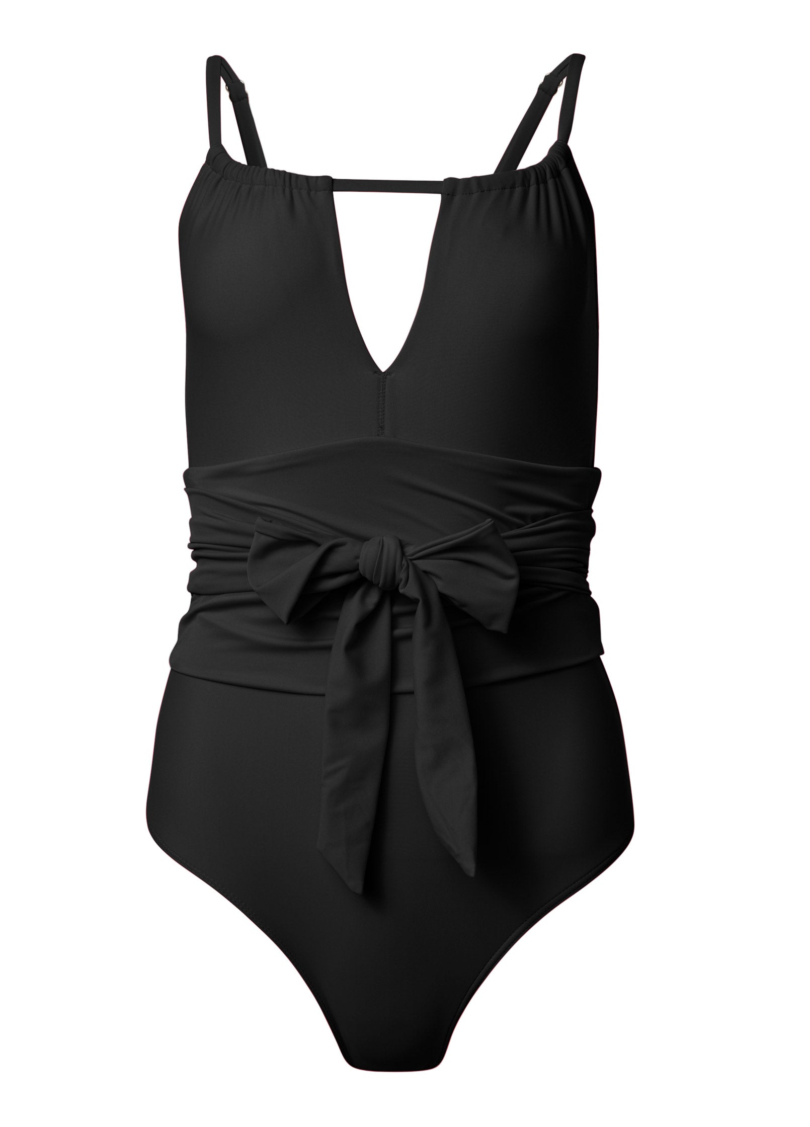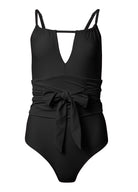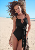 You've found the one(-piece)! Skimming your curves with a panel that appears to narrow your waist, this flirty one-piece finishes with a sash belt for an extra flattering element. Reveal your bold side with the cutout at the neckline that delivers plenty of allure even with the fuller-coverage body.