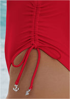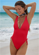 Get ready to rock the boat! Featuring a flattering V-neckline, over-the-shoulder straps, and side ruching, this suit hugs your curves in all the right places. The high-cut leg and side ties add a touch of playfulness while keeping things chic. Whether you're lounging poolside or taking a dip, this one-piece has you covered—literally.