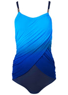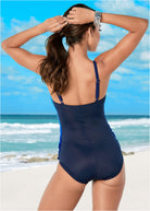 Let the exclusive Venus Hold U In® technology, shelf bra, and surplice styling work to slim you while the fully adjustable elastic straps provide a personal fit. Continue the confidence with full rear coverage.